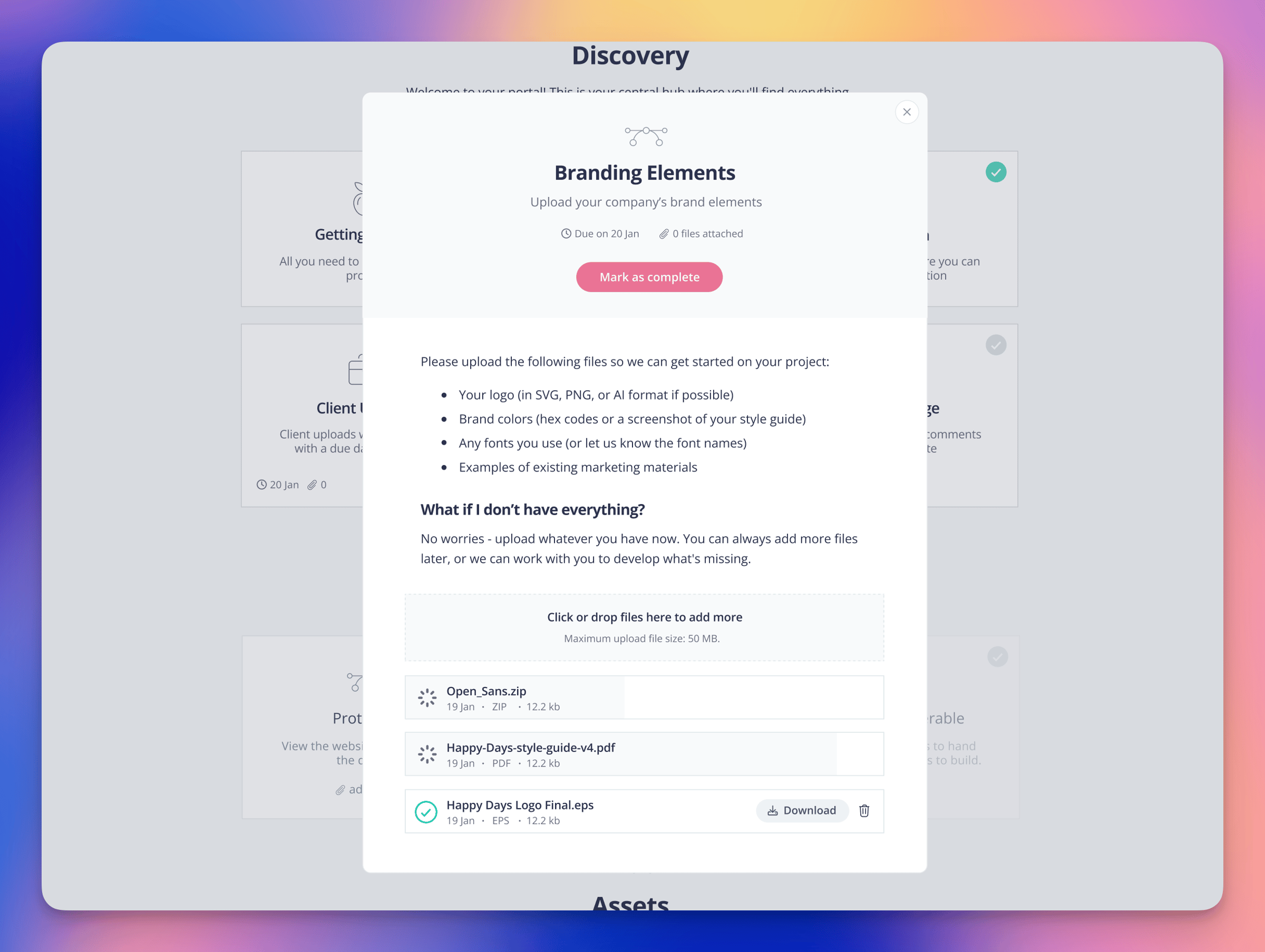 Hey Reader, I've been working on some improvements to Client Portal behind the scenes for a while now, and I wanted to share what's coming over the next few months. I'm so excited for this next release. Not because I'm adding loads of flashy features, but because I'm focusing on the details that make Client Portal a joy to use. Here's what that looks like in practice. Making file uploads less confusing This is a work-in-progress, but I wanted to share a preview because it's pretty exciting....